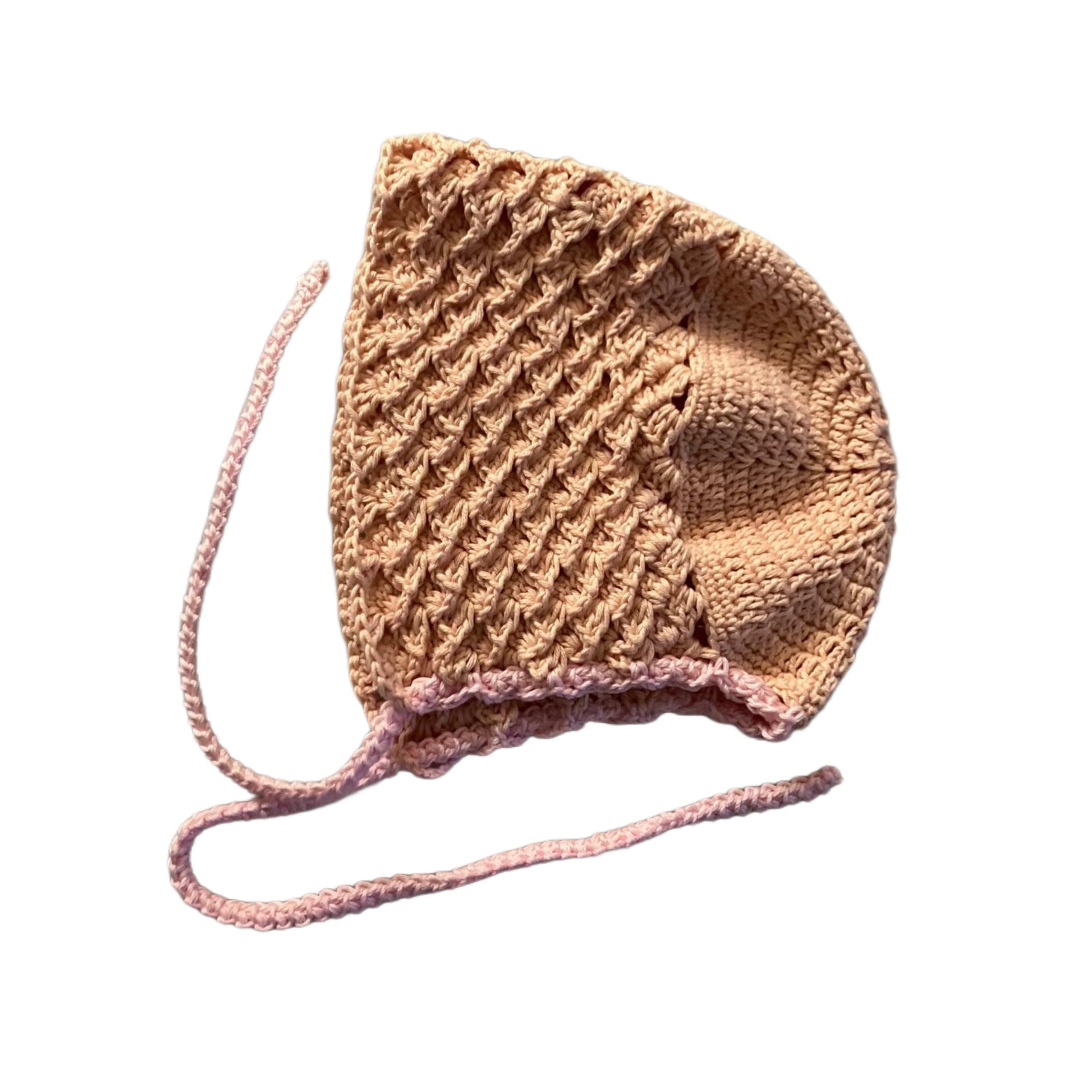 Capota de crochet hecha a mano. Combina con el Pelele Flor Empolvado.