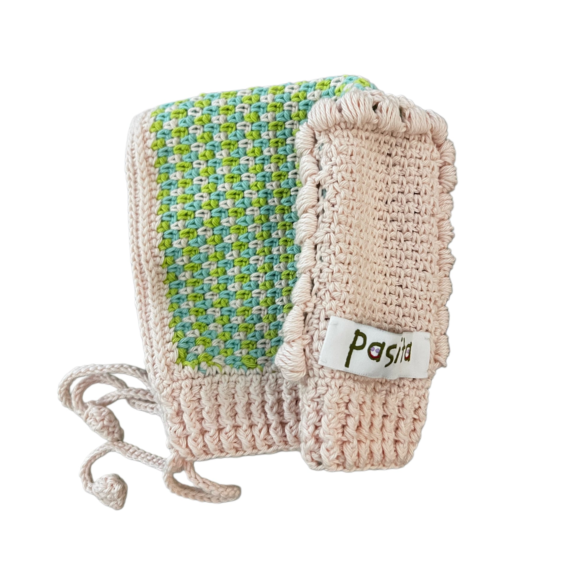 Handmade crochet bonnet. Match with Adela collar & Adela skirt.