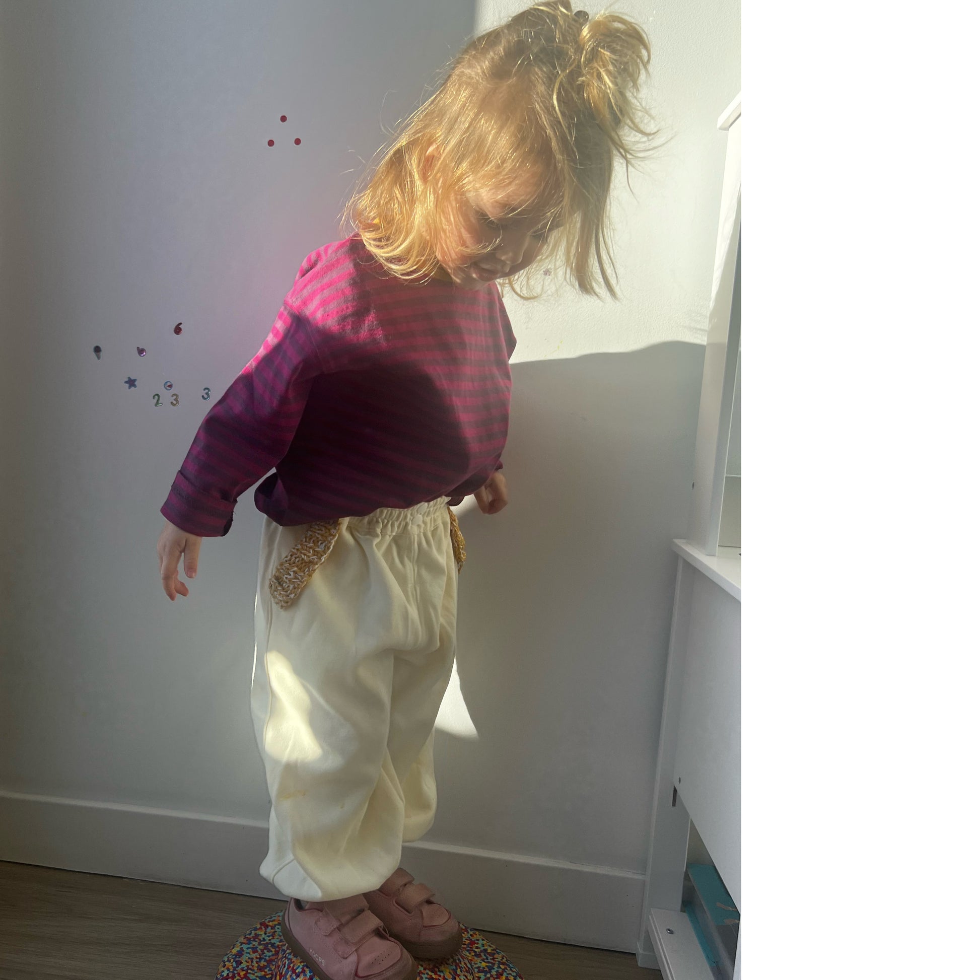 Unisex and soft cotton jogger pants. Featuring an elastic waistband and cuffs. Finished with hand-knitted details hand-sewn onto the front pockets, giving each piece a unique artisanal touch. Comfortable, practical, and perfect for everyday wear.