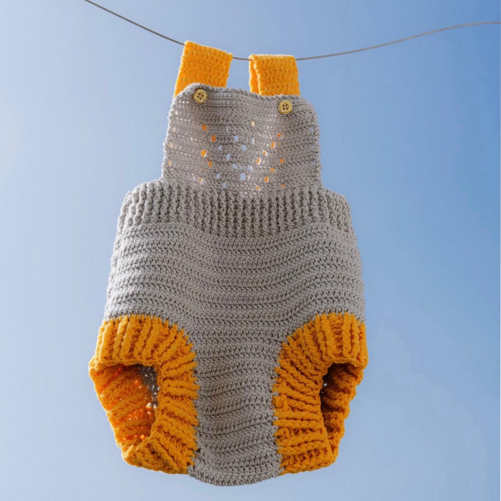 Sleeveless romper. Can be made with or without crocheted flowers and also in two-tone.